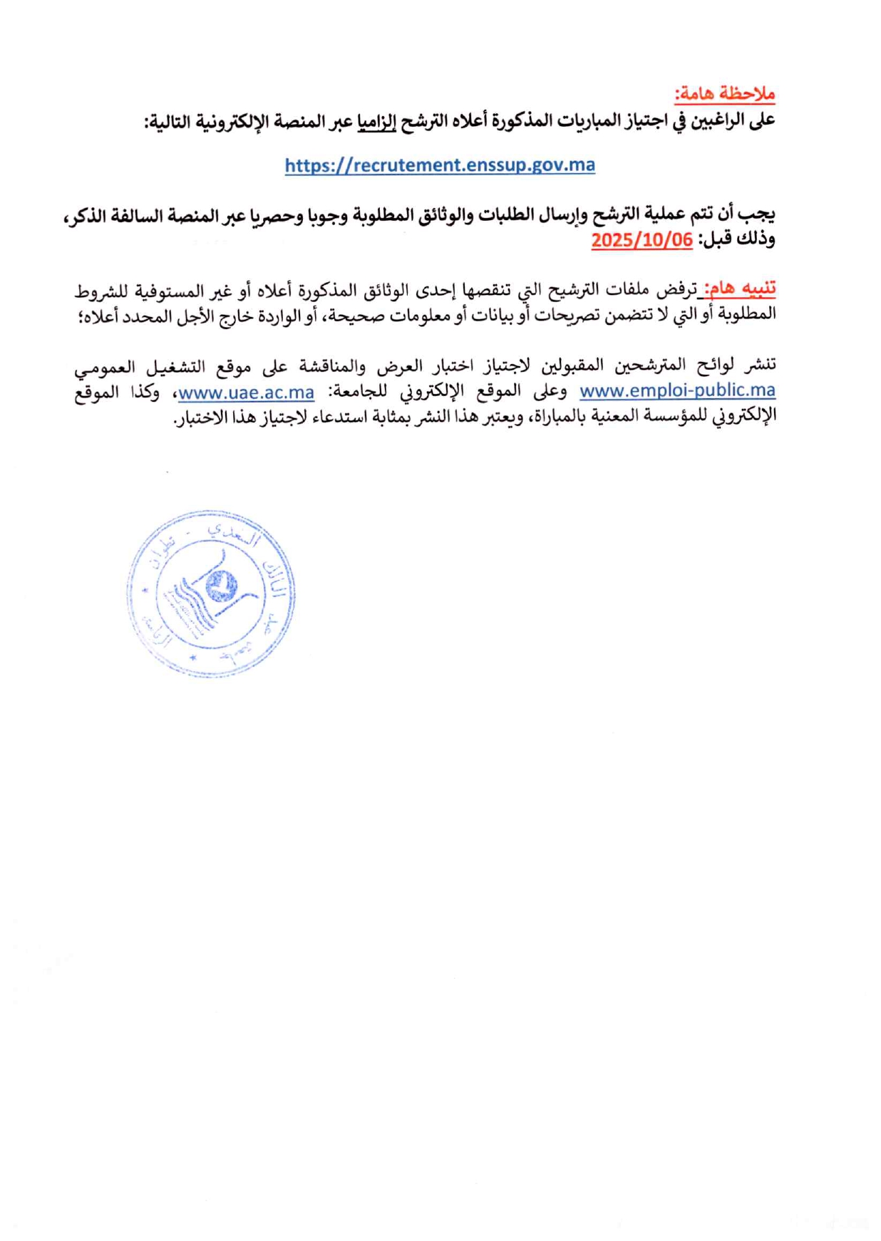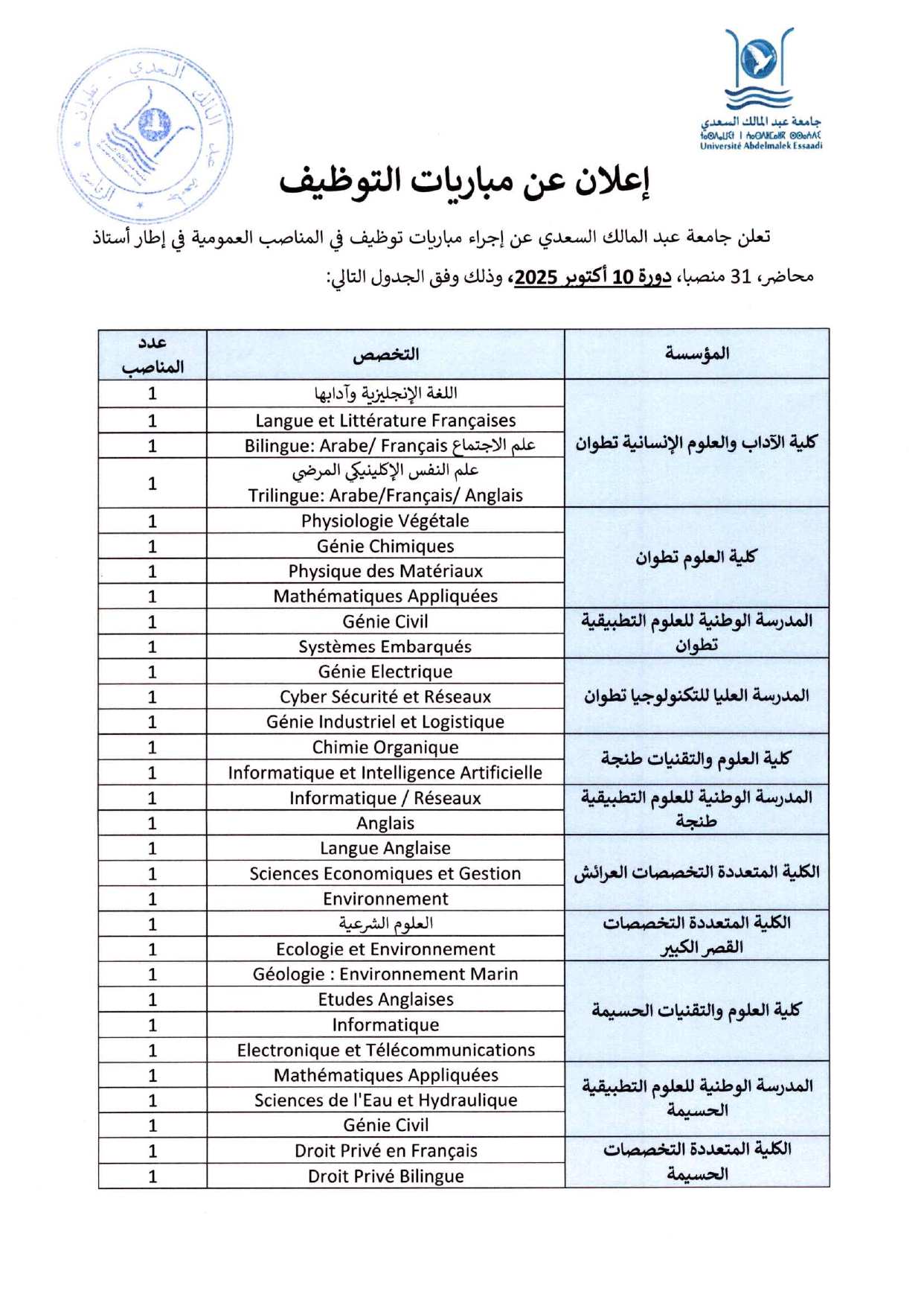 - Administration recruteuse : Université Abdelmalek Essaâdi – Tétouan
