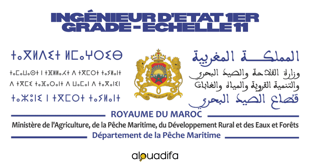 Le Département de la Pêche Maritime organise un concours de recrutement exceptionnel pour 10 postes d’Ingénieur d’État de 1er Grade (Échelle 11). Cette opportunité s’adresse aux ingénieurs qualifiés désireux de contribuer au développement du secteur halieutique national. Postulez dès maintenant pour intégrer cette administration prestigieuse.