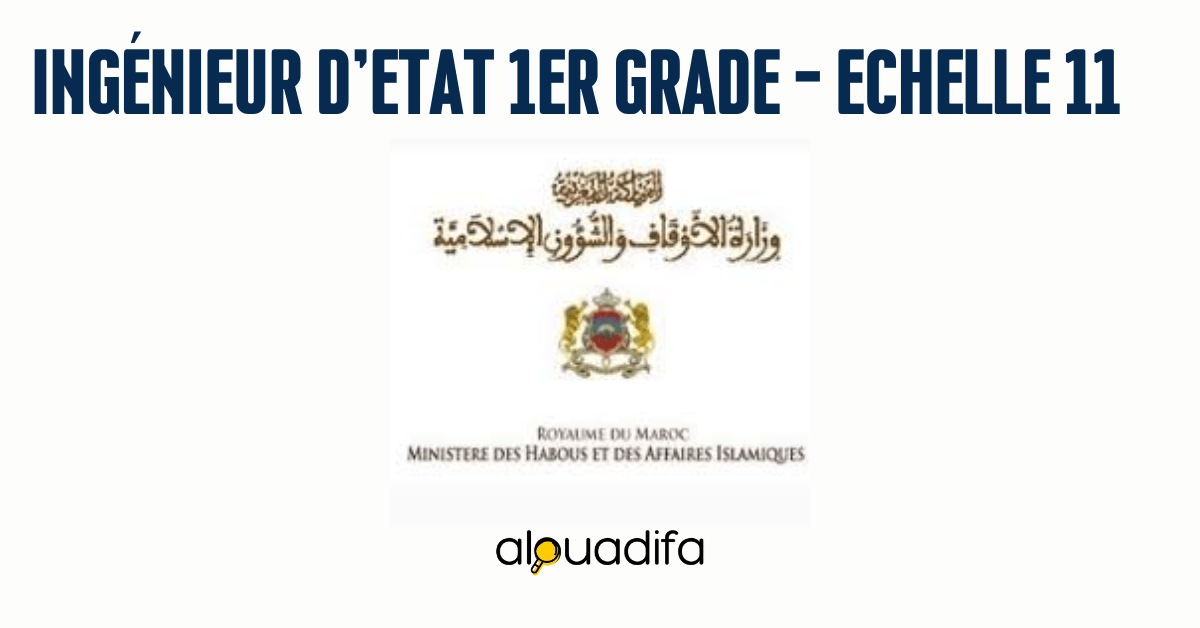 Le Ministère des Habous et des Affaires Islamiques organise un concours de recrutement régulier pour pourvoir 19 postes d’Ingénieur d’Etat du 1er grade (Échelle 11) au sein de ses services centraux, extérieurs et des établissements qui en relèvent. Les épreuves de ce concours Ingénieur d’Etat 2026 se dérouleront à partir du samedi 28 mars 2026 à Rabat et éventuellement dans d’autres villes.