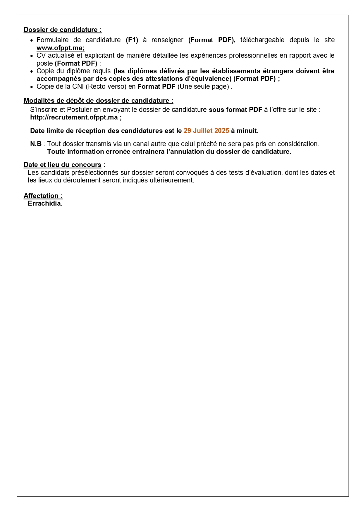 - Dépôt en ligne uniquement sur recrutement.ofppt.ma.