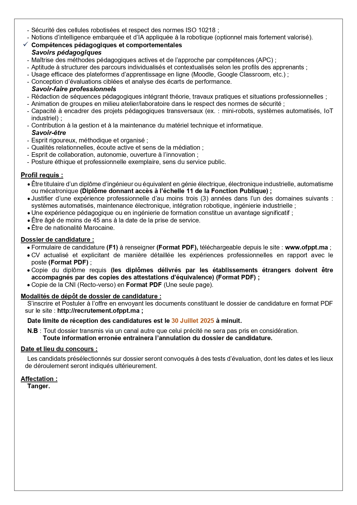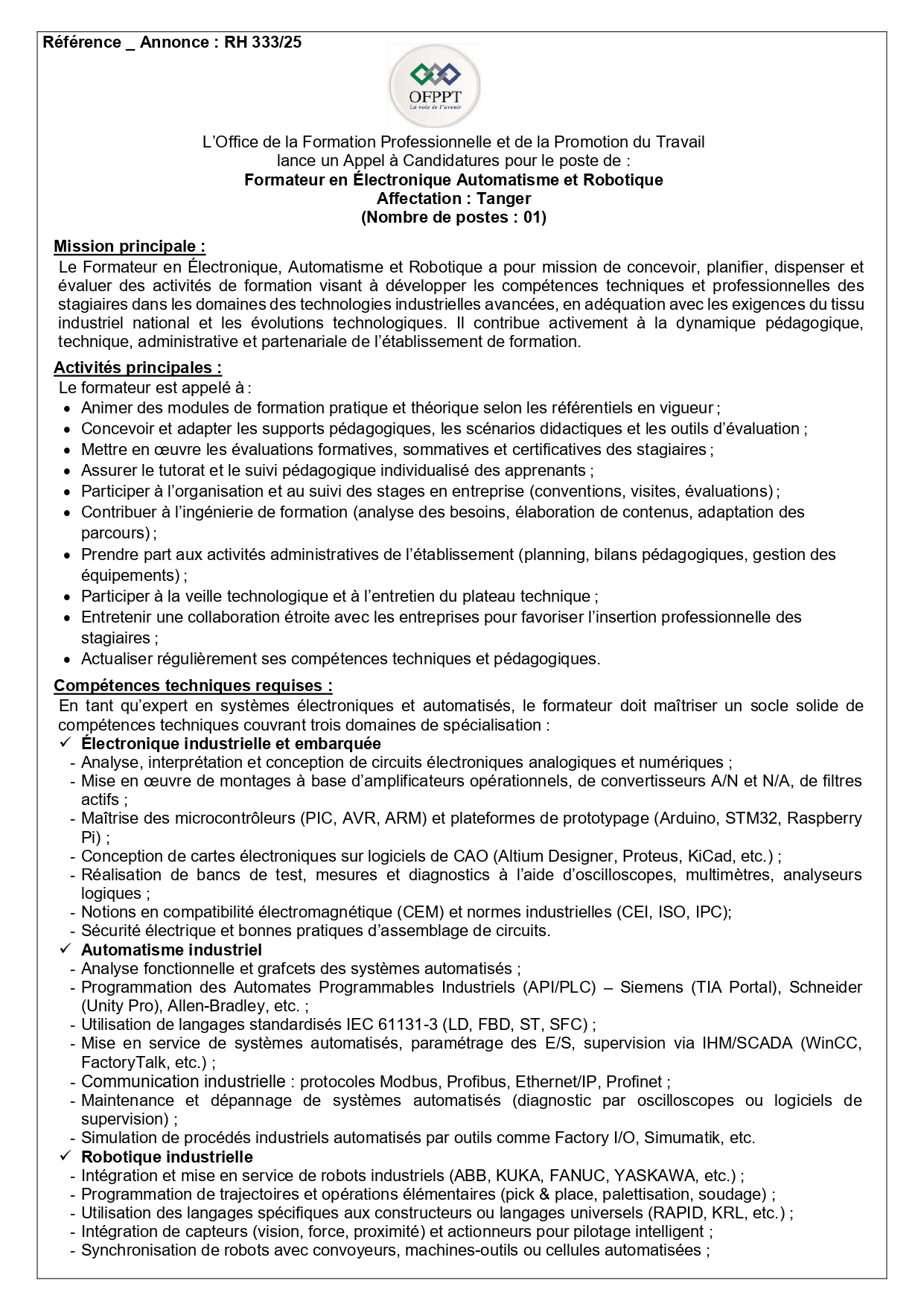 2. Formateur en Électronique, Automatisme et Robotique (1 poste)