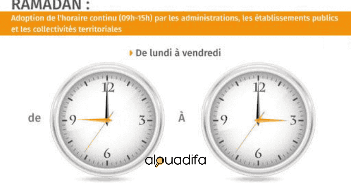 Durant le mois de Ramadan, les horaires de travail dans les administrations de l’État, les institutions publiques et les collectivités territoriales seront modifiés selon le dispositif suivant :